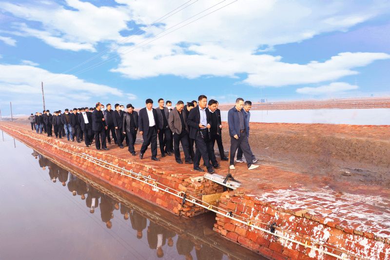 上午,與會人員集中乘車到長蘆公司儲鹵系統改造工程現場、26隊扒鹽現場、溴素擴能升級改造項目現場、建筑工程公司施工工地現場進行了現場觀摩,并聽取了所在單位負責人的現場介紹。黨委書記、董事長劉建軍對以上公司的工作給予充分肯定,并提出了指導性意見。