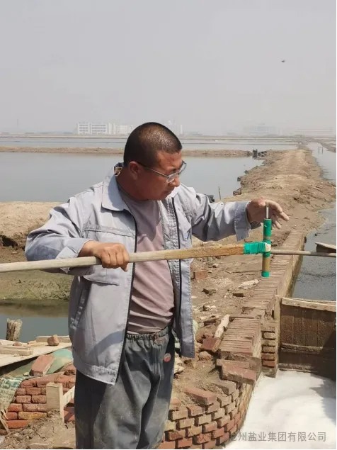 陳國輝在鹵水趕制方面經驗豐富、技術過硬,特別是對天氣處理,鹵水調節都能做到合理安排,科學規劃。他能結合天氣的變化,靈活調配,鹵水在他的排步下,進灘頭、越溝壕、鉆保鹵圈,經過漫長的蒸發過程,最終達到溴素生產需要的標準范圍。優質“鹵水”的獲得離不開陳國輝與班組成員一手拿鐵鍬、一手拿“度表”,從黎明到傍晚,從嚴寒到酷暑,日復一日的轉灘、修閘、晾曬及處理天氣、排淡保鹵,他孜孜以求揮灑著勤勞的汗水,只為把600多畝水面合理調配做到“保鹵、趕鹵”。
