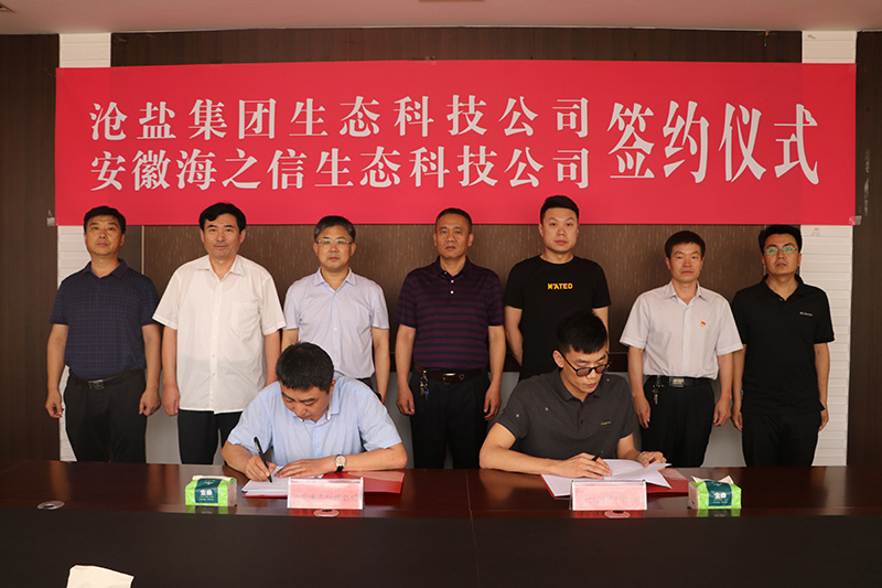 6月19日,滄鹽集團生態科技公司與安徽海之信生態科技公司舉行合作簽約儀式,生態科技公司經理劉佳峰與安徽海之信生態科技有限公司董事長李巖分別代表雙方簽署合作意向書和供銷合同。滄鹽集團領導劉建軍、文興峰、李蜻海及相關部門負責人和合作方代表出席簽約儀式。