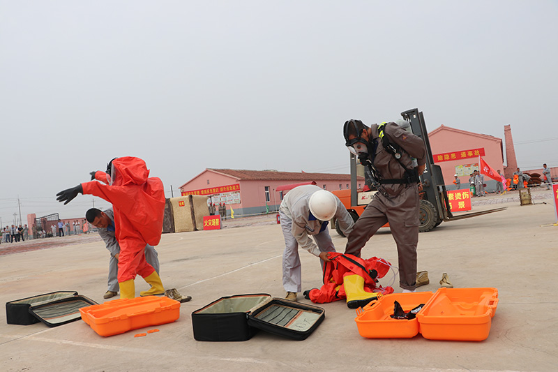 本次參加實戰演練的隊員40余人。活動模擬了機械傷害、中暑、觸電、火災、溴素燙傷、氯氣泄露等6個事故場景。在應急救援指揮部的統一指揮下和各應急救援隊員的準確處置下,人員得到了有效疏散,傷員得到了及時救助,事故得到有效控制,全面檢驗了指揮調度效率和救援隊伍的應急實戰水平,確保了遇到突發事件能“拉得出、攻得上、打得贏”。演練同時還進行了消防技能、空呼機穿戴、防化服穿戴、空呼機穿戴30米跑等比武活動。