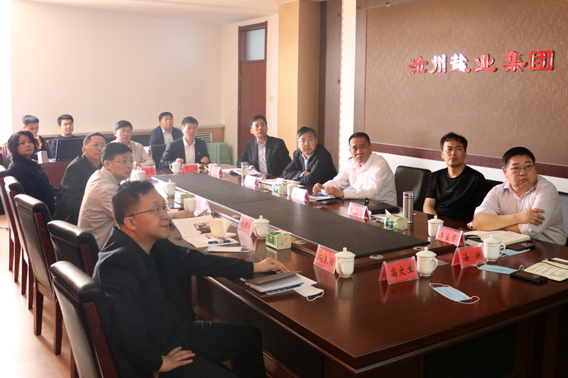 湖南鹽業雪天科技董事長陳新、湘恒鹽化副總經理趙昌武,公司領導張立莊、文興峰、李金營、于劍參加了洽談。