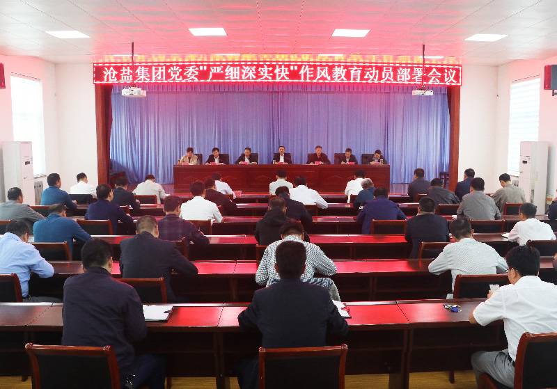黨委副書記李蜻海宣讀了《中共滄州鹽業集團有限公司委員會關于鞏固深化“不忘初心、牢記使命”主題教育成果在全體黨員干部中開展“嚴細深實快”作風教育的實施方案》。“嚴細深實快”作風教育從2020年10月10日開始,到2021年1月10日基本結束,分為強力動員部署、深化學習研討,嚴格對標對表、深入檢視查擺,深刻剖析根源、認真組織整改,全面系統總結、形成長效機制四個階段,并通過開展作風教育,做到“嚴”字當頭、“細”字用心、“深”字發力、“實”字落地、“快”字提速五大目標。