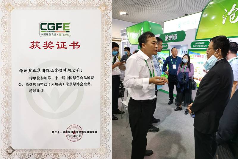 11月4日至11月8日,公司總經(jīng)理張立莊帶隊赴福建省廈門市參加了第二十一屆中國綠色食品博覽會。"滄鹽"牌未加碘海晶鹽在眾多參展產(chǎn)品中脫穎而出,獲得本屆博覽會金獎。