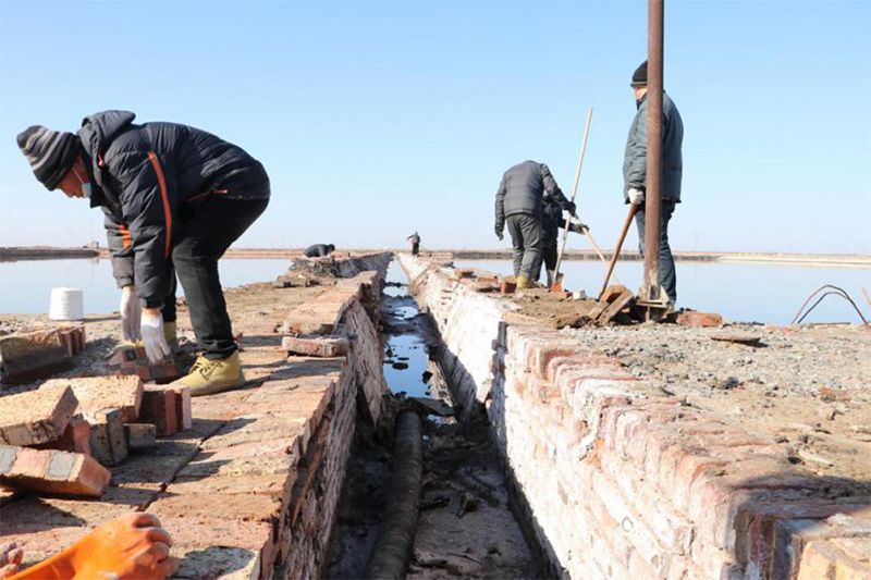 青鋒鹽業公司本著修一得一的原則,夯實生產基礎,強化各項生產措施,積極開展了冬季修灘工作,投入機械設備共維修蒸發池、調節池2240公畝,技改趕鹵池640公畝,努力為提高產能打好基礎。