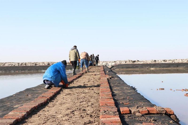 為了做好灘田文明生產,長蘆公司生產一線干部職工積極投入到灘內護氈工作中。截至2021年2月2日,長蘆公司制鹽四五六工區共完成護灘埝修整、護氈13200米,完成灘內池埝護氈12副灘,累計完成護氈面積達13.3萬平方米。
