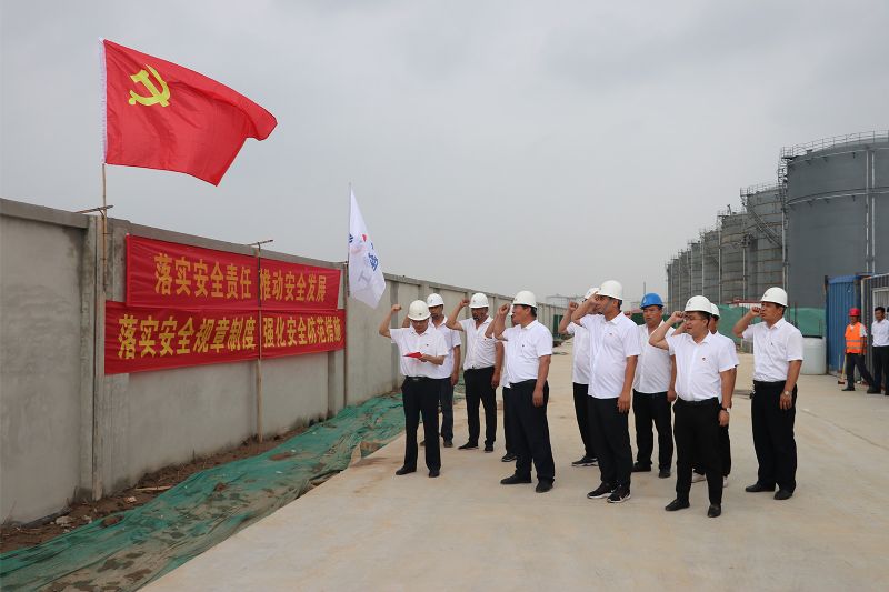 崔治宇向各工程項目負責人進行了授旗,讓黨旗高高飄揚在項目施工現場。建筑工程公司全體黨員還在黨旗下重溫了入黨誓詞。