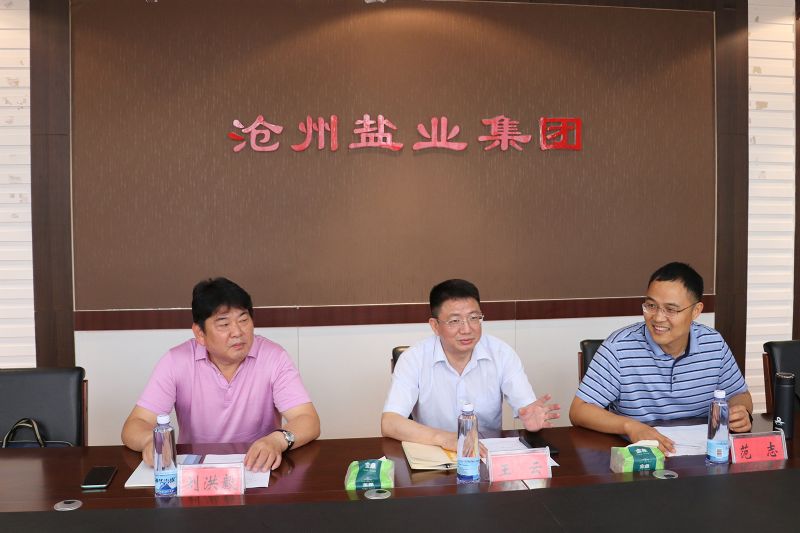 劉建軍對王云一行表示歡迎,并簡要介紹了滄鹽集團近年的發(fā)展情況。他表示,中鹽與滄鹽地緣相近,人緣相親。滄鹽曾有三十多年隸屬中鹽總公司,中鹽作為上級領(lǐng)導多年來一直關(guān)注和支持著滄鹽的發(fā)展,雙方有著深厚的感情和密切的業(yè)務聯(lián)系,彼此信任有加,合作基礎牢固。希望雙方能夠發(fā)揮各自優(yōu)勢資源,推動合作建設海鹽食鹽加工基地項目,實現(xiàn)共贏。