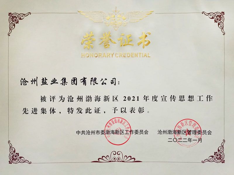 2月17日,在渤海新區(qū)宣傳工作會議上,我公司榮獲“2021年度宣傳思想工作先進(jìn)集體”榮譽(yù)稱號并受到表彰。