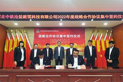 河北中鐵滄鹽建筑科技有限公司分別與滄州市中潤新型建材有限公司、河北建工物流有限公司、滄州鹽業集團建筑工程有限公司簽訂了戰略合作協議。
