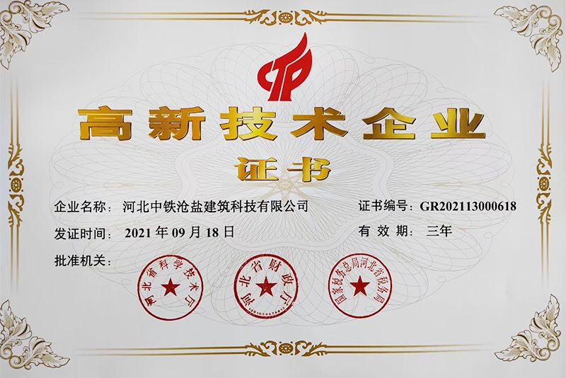成為省級“高新技術企業”,將為中鐵滄鹽的產業發展、資金補充、資質補強、訂單承攬、稅收優惠等工作打下良好基礎。