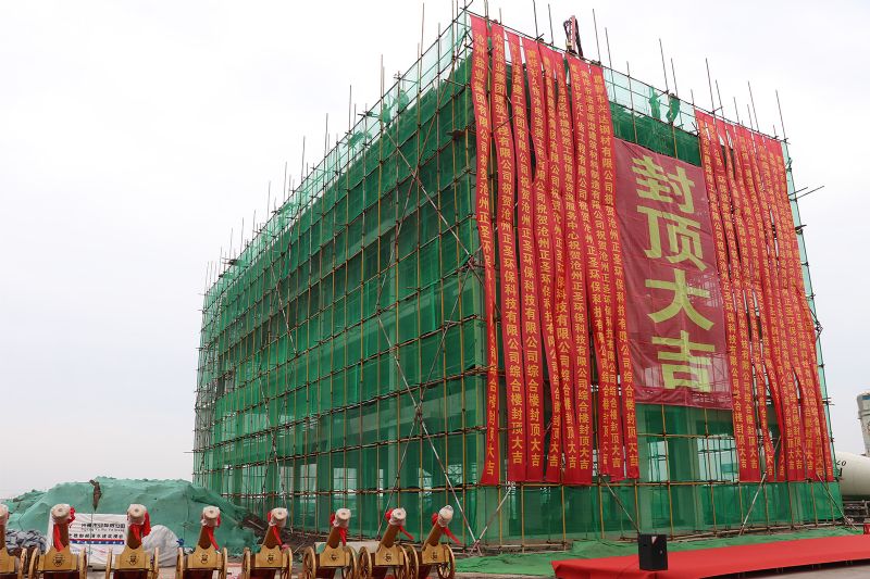 8月18日,滄州正圣環保公司項目施工現場人頭攢動,辦公大樓被一條條紅色標語裝點得格外喜慶。由建筑工程公司承建的正圣公司綜合辦公樓主體框架工程順利完成并舉行了封頂儀式。儀式由正圣環保公司董事長閆宗金主持。