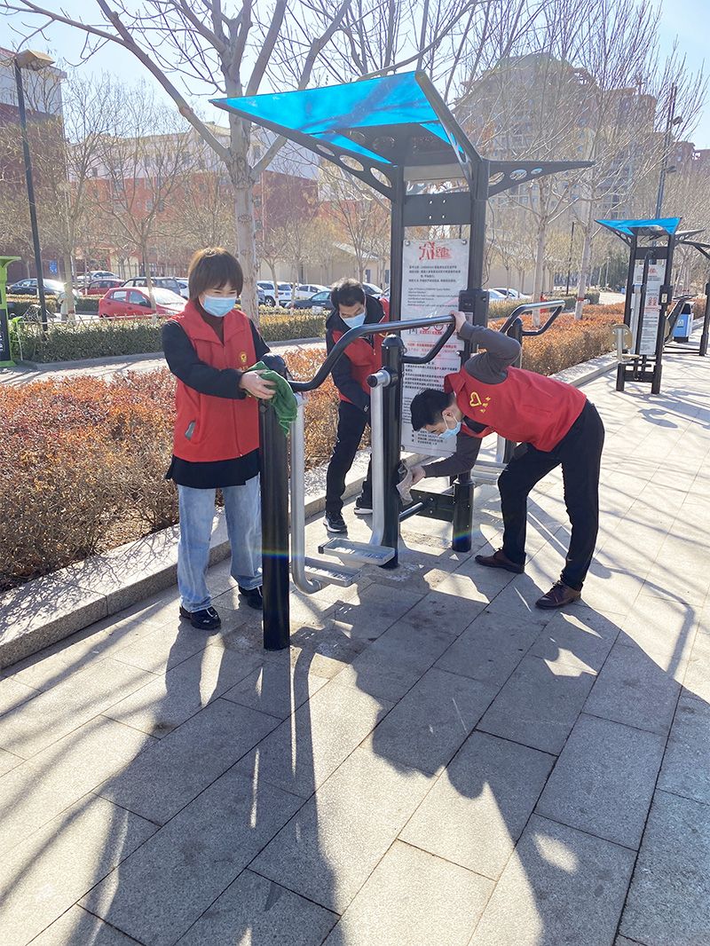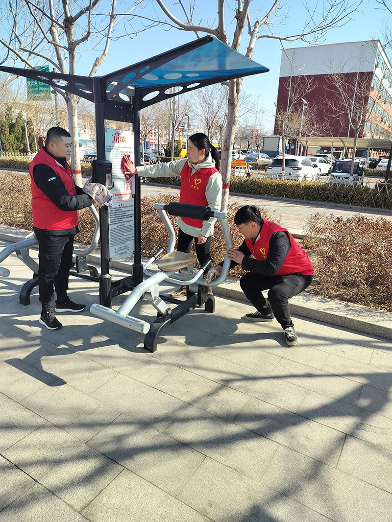 活動中,團(tuán)員青年發(fā)揚(yáng)不怕苦、不怕累的光榮傳統(tǒng),對廣場的健身器械全面擦拭、對花壇、綠化帶、人行道的垃圾、煙頭全面清理,不放過一個死角。