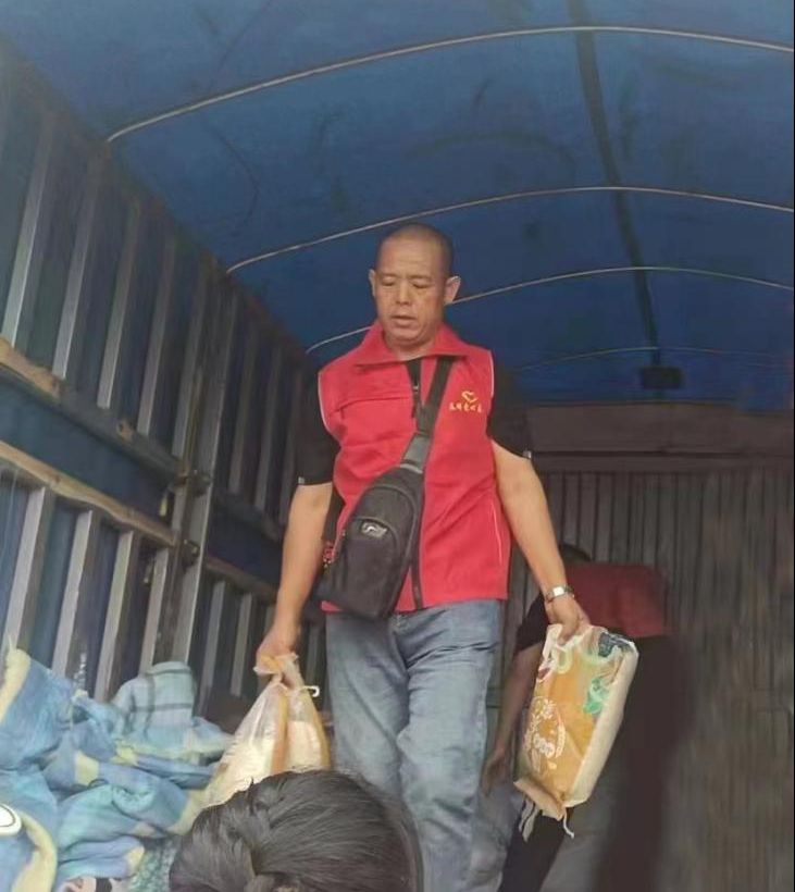 7月29日早晨5時,張元彬攜妻兒與所屬的渤海新區(qū)黃驊市港城區(qū)春暉志愿者團隊聯合渤海新區(qū)黃驊市紅色朝陽志愿者團隊,共計50余人驅車四百多公里前往保定淶源愛心互助家園,為當地孤寡老人及兒童送去了衣服、被子、鞋、米、油、書包、筆等生活、學習物資必需物品。這是張元彬全家第三次去淶源山區(qū)進行志愿服務。