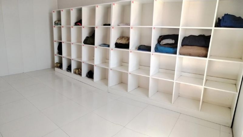 建筑工程公司為全體職工配備了新床、新床墊和床單,為每個宿舍配備了儲物廚、垃圾簍等用具;為前勤職工配置了更衣室,方便職工更換存放衣物。同時,還專門安排衛生管理人員,經常性清洗門窗,清除雜物,使門窗玻璃始終保持明亮干凈,室內物品擺放有序,切實提升了職工的生活環境。