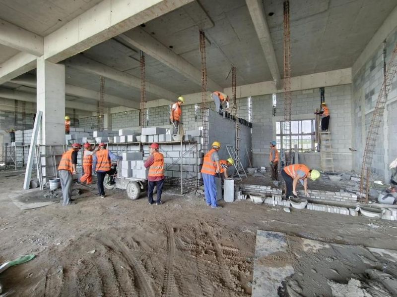 目前,該項目會議中心二次結(jié)構(gòu)砌體工程以及二層至頂層也已全部完工,職工們正緊鑼密鼓地對會議中心一層進行砌筑施工,力爭9月下旬完成主體工程驗收。