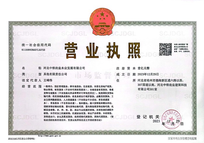 2023年12月29日,河北中鐵滄鹽木業(yè)發(fā)展有限公司注冊成立,標志著滄鹽集團引入央企三級子公司正式落地,華北進口木材產(chǎn)業(yè)園建設(shè)正式拉開序幕。