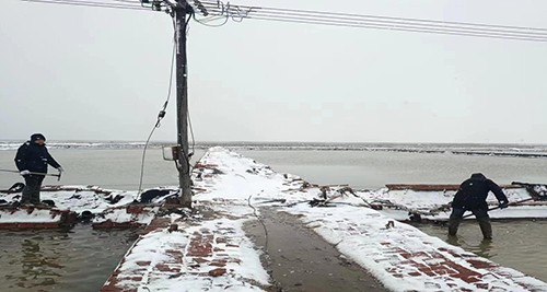 根據(jù)天氣預報,長蘆公司提前做好保鹵、加深結晶池、防滑防凍、留崗值班、交通安全等防災減災安排。全體生產管理人員、制鹵人員堅守崗位,冒著暴風雪寒潮開啟循環(huán)串壕、融化積雪,徹夜進行結晶池和調節(jié)池片淡,盡最大限度減少鹽鹵損失。