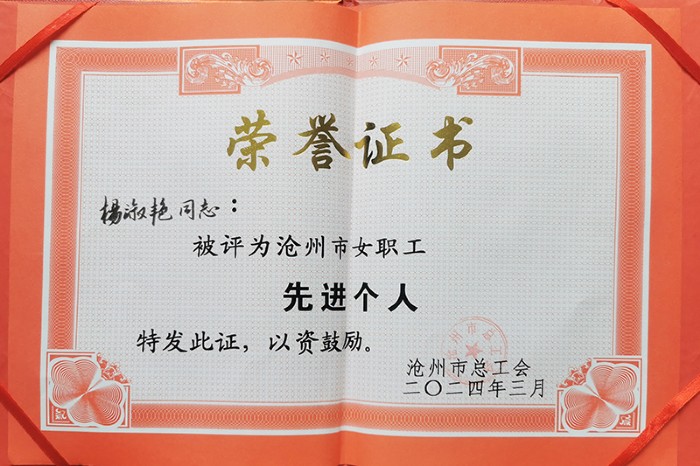 獲獎職工分別接受了滄州市總工會和黃驊市婦聯的表彰。