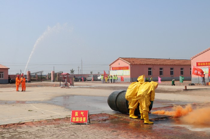 本次演練模擬了機械傷害、中暑、觸電、火災、氯氣泄漏等五類事故場景。演練前組織了空呼機、全封閉防化服穿戴等技能比武。通過演練和比武,使廣大職工了解并掌握了安全急救、消防滅火、安全疏散、傷員搜救、工藝處理、專業搶險搶修等常規操作,提高了消防搶險突擊隊快速正確、有效救援、應變處置能力,為有序高效開展應急救援、筑牢安全生產防線、完善集團公司事故應急管理體系奠定了堅實基礎。