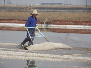 歷經去冬今春近半年的生產成果積累,4月27日,制鹽一場、制鹽二場相繼開耙,打響了我公司春扒戰役。制鹽三場由于浮卷塑苫面積所占比例大,按照浮卷灘扒鹽進度和遍數要求,春扒工作將于5月中下旬進行。