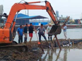 災情發生后,公司干部職工沖上前線,自29日開始,制鹽一、二場地勢低洼灘副的駁鹽溝、導水路水位相續開始漫堤,各場班子親自帶隊,組織場突擊隊立即進行長埝擋水,在風雨中砸樁、護埝,多日奮戰在抗災一線。在整個強降雨過程中,灘內溝埝局勢多次告急,排淡溝道水位持續上漲,鹽碼安全岌岌可危,公司防汛辦晝夜巡查汛情,多次下令各制鹽場要統一行動,令行禁止,在供電處的大力配合下有序排水,各制鹽隊都從大局出發,自覺定時關閉一切強排水泵。汛情關鍵時刻,公司防汛辦結合鹽業裝備制造廠緊急調用兩臺挖掘機坐陣一場、二場、制鹵場,做好危埝的加固長高和疏通排淡工作,并及時貫通一、二場排淡系統,對二場過高的警戒水位進行有效的疏導。制鹽三場、制鹵場也及時組織人員,對儲鹵汪子土埝出現潰溢的地段進行了排險加固。災情牽動著各級領導的心,在險情最危急時刻,董事長劉建軍夜間來到現場巡視災情,慰問職工,指導救災工作;公司防汛指揮部成員也來到汛情嚴重的制鹽一、二場參與搶險工作;鹽業裝備制造廠、供電處、供應處、筑裝處按照公司防汛指揮部統一安排,出動70余人組成的搶險突擊隊冒雨和二場全體干部職工一起搶險救災。在整個抗災搶險過程中,全公司先后投入編織袋32500條,木樁3186根,人工護埝20190米,動用機械設備護埝10220米,清淤場區周邊堵卡地段17處。